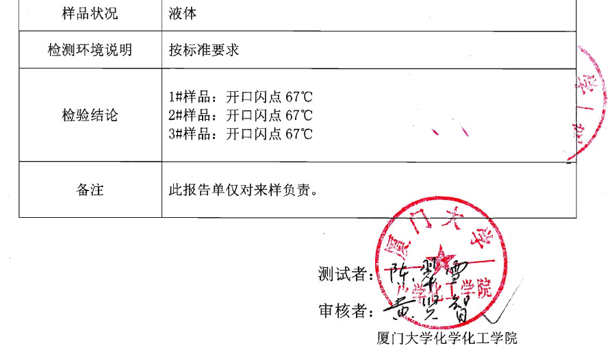 针对甲醇闪点低、挥发性大的特点,我公司研发出了甲醇闪点提高剂,采用阻断隔离、改性等原理,使甲醇的闪点从12.22度提升到60度以上,增强燃烧、储存、运输的安全性。