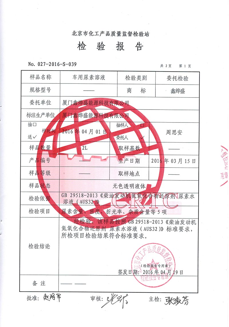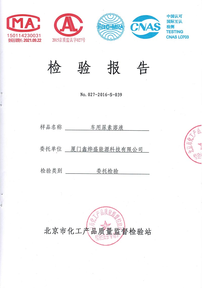 鑫烨盛车用尿素溶液组成成分为32.5%的高纯尿素和67.5%的去离子水。产品通过与NOx产生选择性催化还原反应,将其转换成氮气、水,降低氮氧化物的排放,达到环保效果。